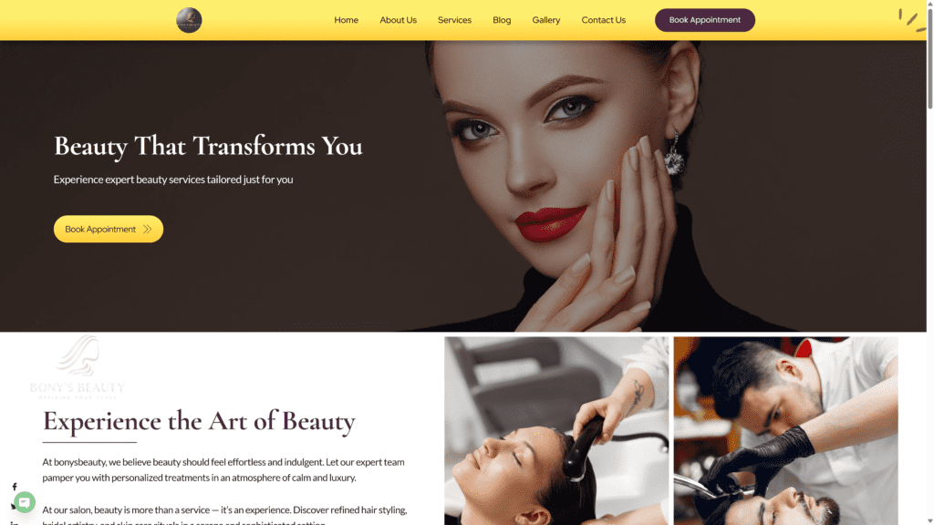 A professional and mobile-responsive website to showcase the salon’s services, pricing, and gallery, while also enabling customers to conveniently book appointments online.